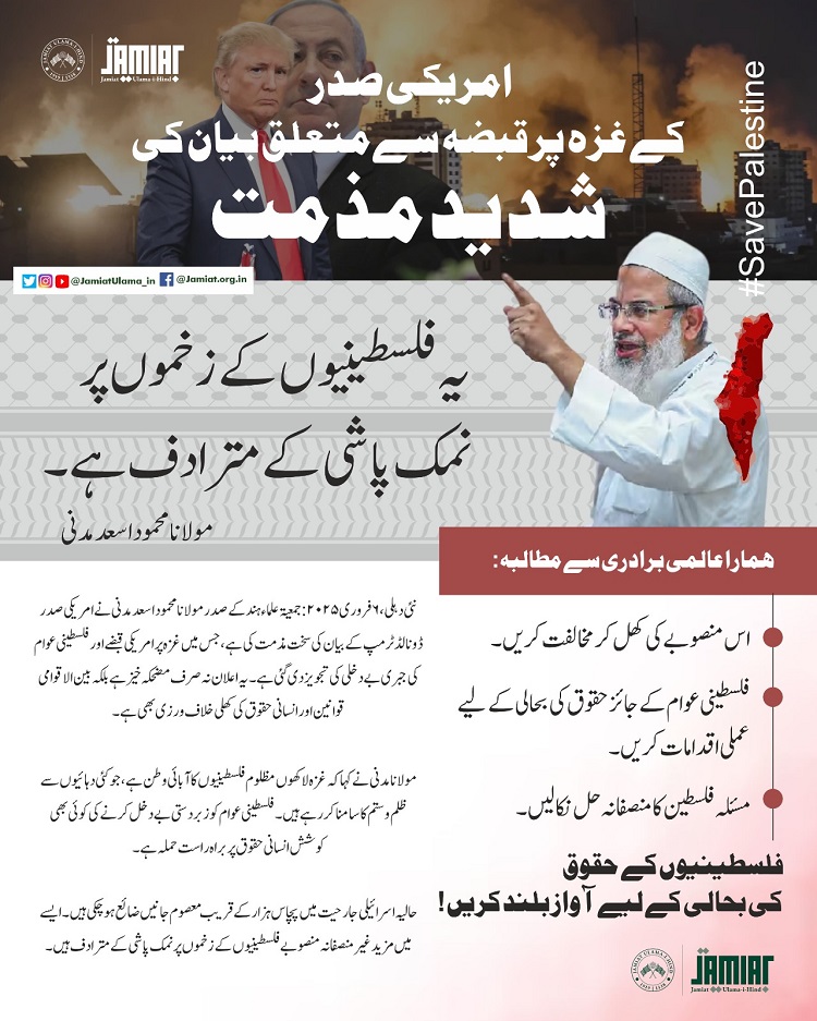 Read MoreJamiat strongly condemns US President’s statement on